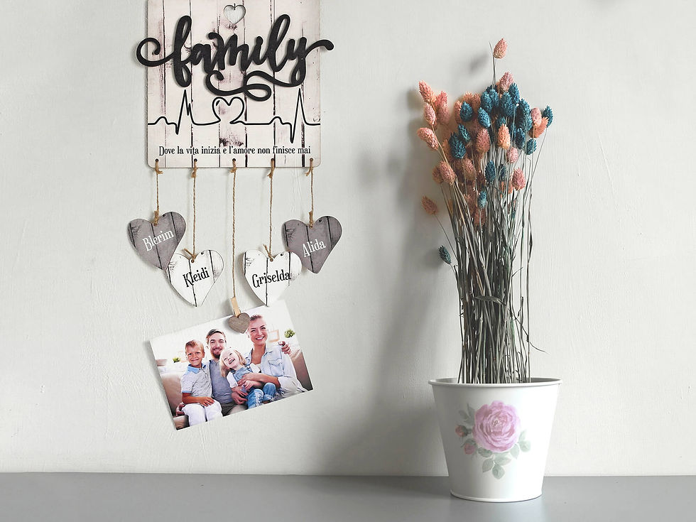 Portafoto nomi personalizzati in Legno con mollette a cuore